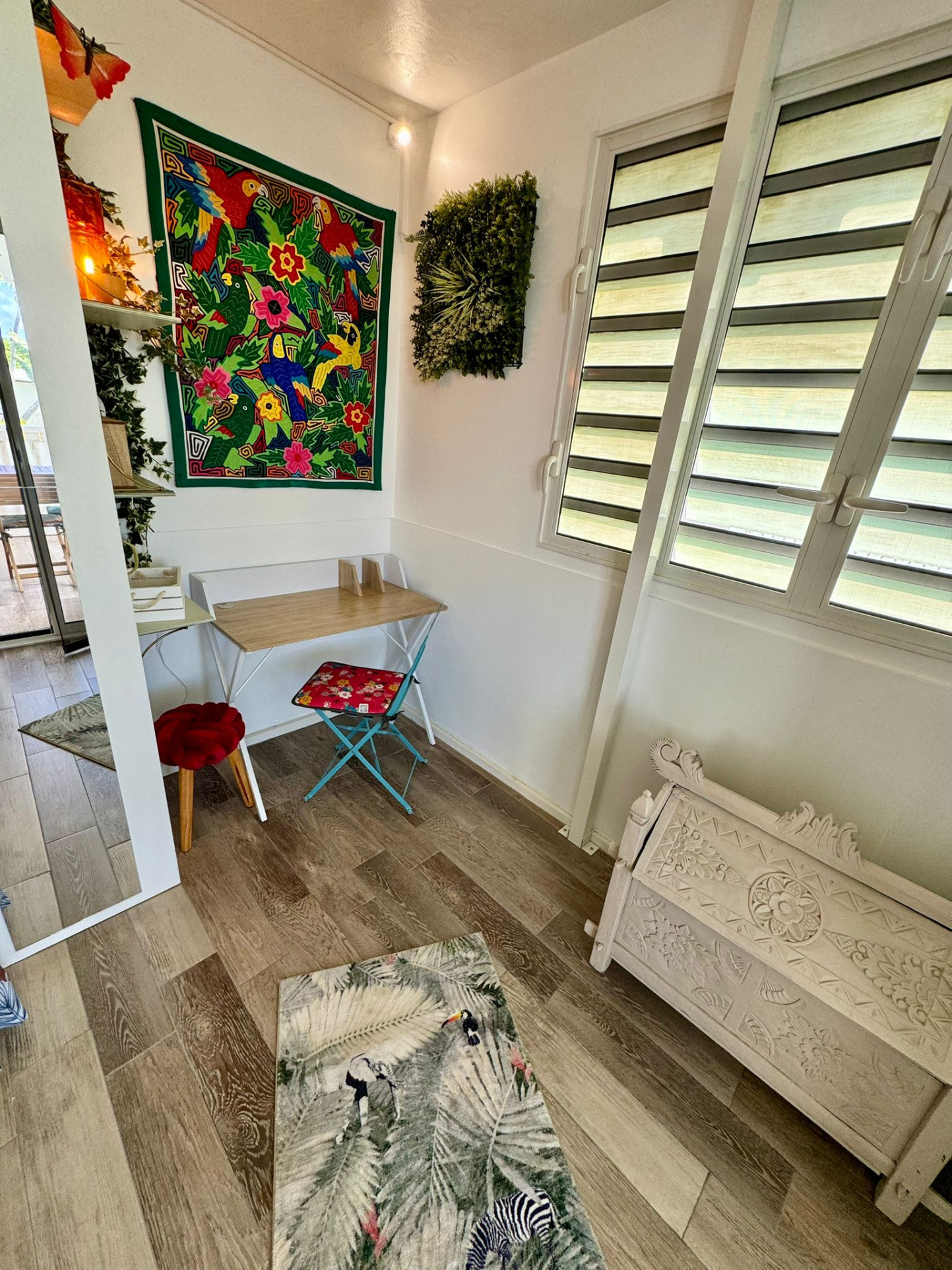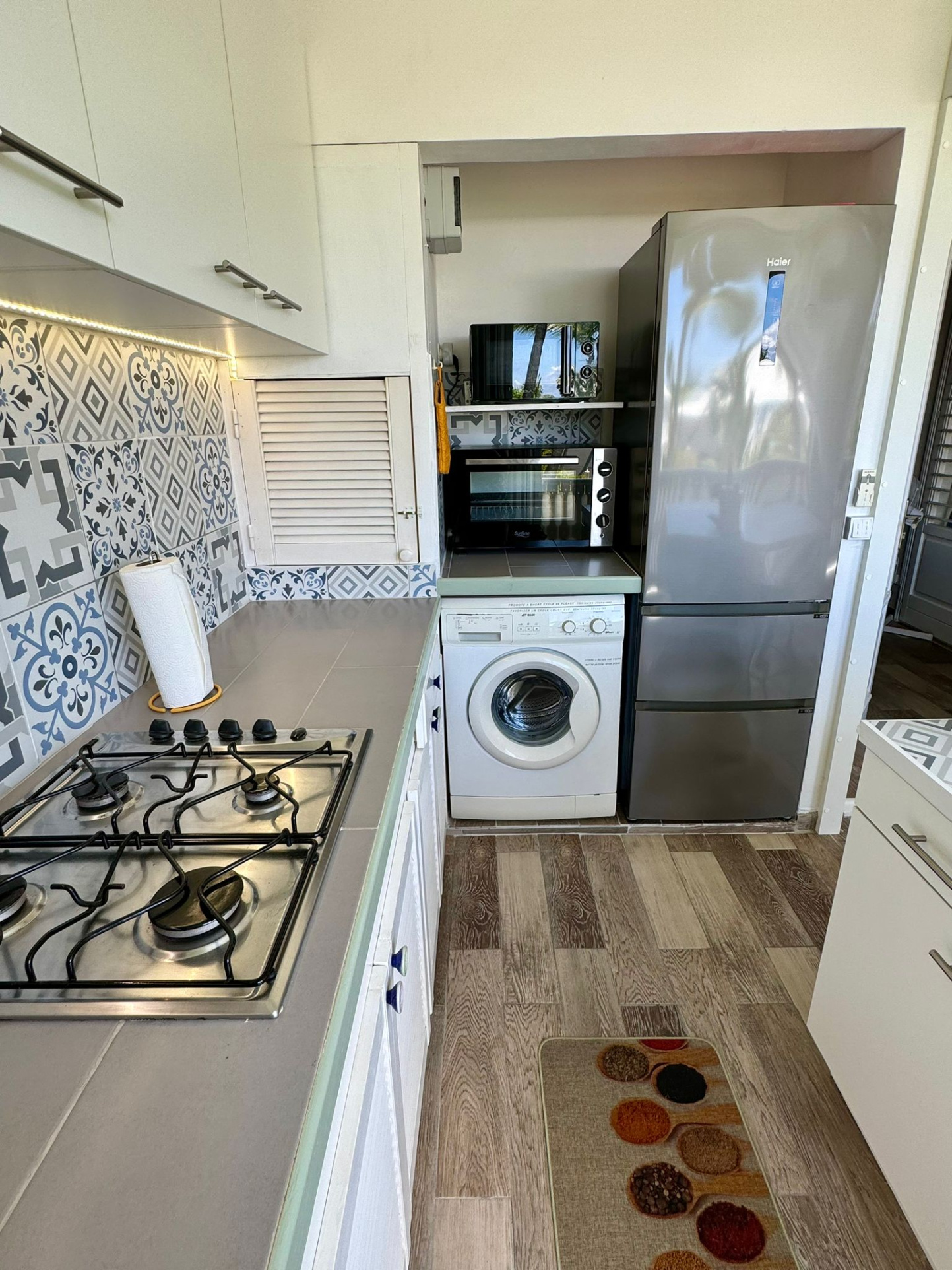 Cuisine équipée, espace de vie confortable, salle d’eau fonctionnelle.