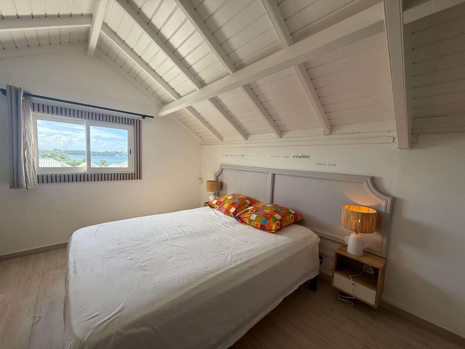 Ce T2 en duplex, entièrement rénové, se situe dans une résidence calme et sécurisée, avec une belle vue sur le lagon.